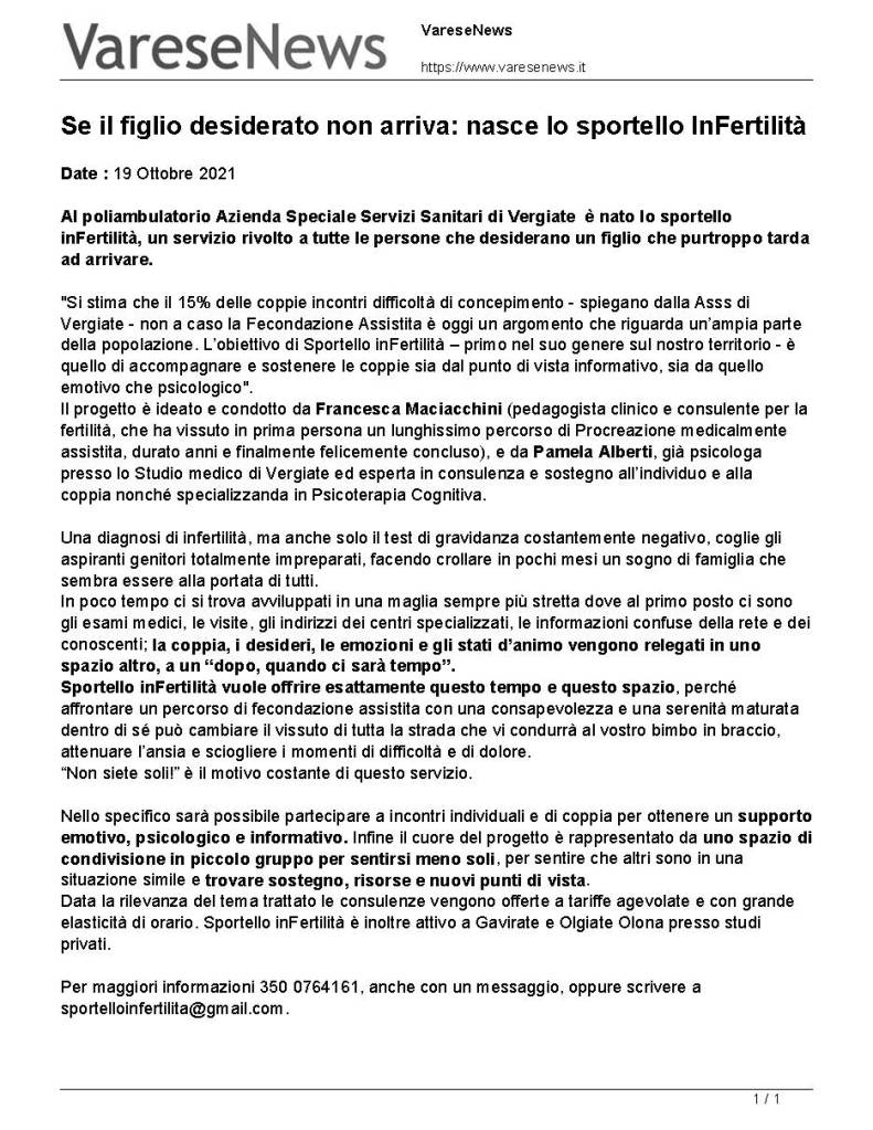 Incontri con la Consulente per la Fertilità – dottoressa Maciacchini Francesca